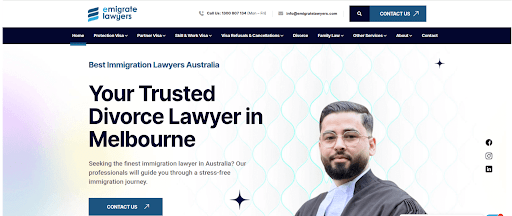 Emigrate Lawyers is a Melbourne-based immigration law firm with experience assisting clients across a range of Australian visa and migration matters. The firm provides advice and support for applications, including protection visas, spousal and partner visas, child and parent visas, and skilled migration visas. Emigrate Lawyers offers clients clear explanations of legal requirements and processes, helping individuals and families understand available options and prepare appropriate documentation for their specific circumstances. In addition to application assistance, the firm represents clients in administrative reviews, ministerial intervention requests, and other appeal processes. Emigrate Lawyers also advises on related legal matters, such as divorce processes, providing a comprehensive service to those navigating Australian immigration law.