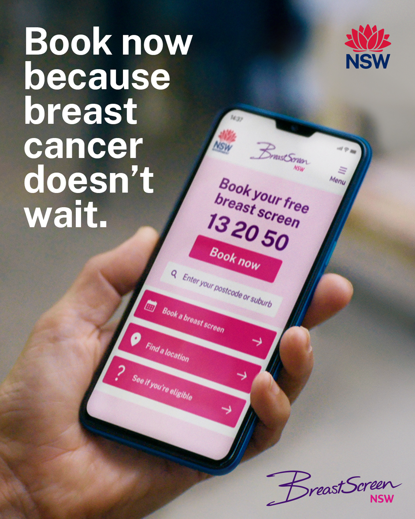 BreastScreen NSW’s current “Breast Cancer Doesn’t Wait” campaign encourages women to make time for their breast screen, even when life feels nonstop. It’s a gentle but important reminder that prioritising your health isn’t selfish — it’s essential.