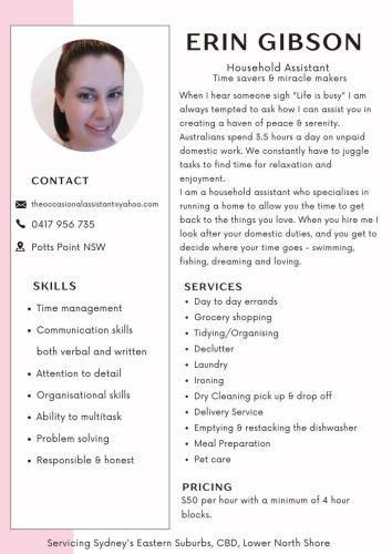 - In-Home Household Assistance - Including errands, organising, meal prep, washing, ironing, daily reset, detail dusting & more.