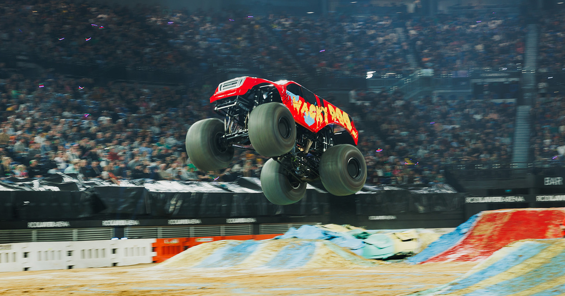 This is not just a show — it’s a full-scale live spectacle where an army of massive machines takes over the arena. Expect to see fan-favourite Monster Trucks including Wicked, Wacky-Doo, Buddy, Raptor’s Rampage, Miss Mayhem, Blazed, Executioner and more, all launching into huge jumps and gravity-defying stunts.