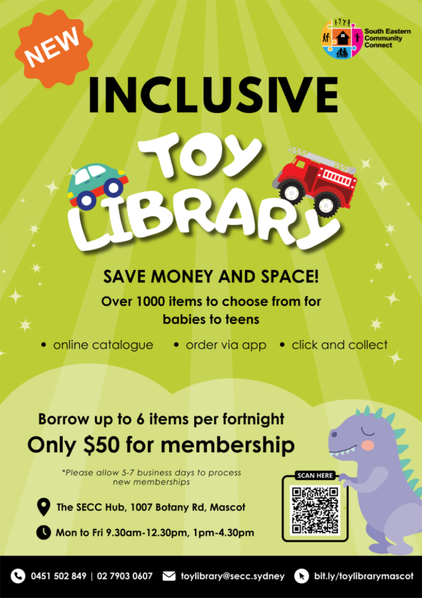 Sydney Eastern Community Connect (SECC) is thrilled to announce the relaunch of its popular Toy Library, redesigned to better support all families — including children with disabilities and additional needs.